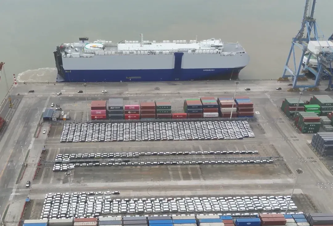 此次出海的车辆中,格外引人注目的是330余辆新能源汽车。作为外贸“新三样”(电动汽车、锂电池、光伏产品)的主力军,它们与传统燃油车并肩而立,共同奔赴海外市场,尽显“中国智造”的强劲实力与蓬勃生机。