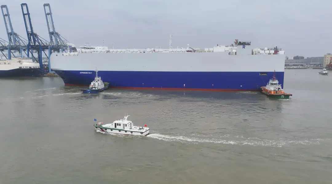 2月17日,年味正浓,麻涌新沙港已是一派热火朝天的繁忙景象。新沙海事处坚守一线,精准护航“HYPERION RAY”号汽车滚装船顺利靠泊新沙港区。2100余辆中国制造汽车即将装船启航,通过水上“绿色通道”驶向国外,打响了粤港澳大湾区新春外贸的“开门红”。
